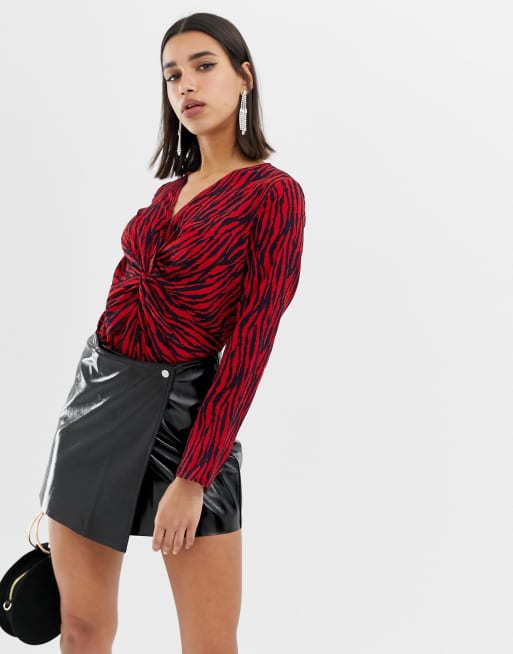 Musisz zobaczyć Outrageous Fortune – Czerwone body z długim rękawem z ozdobnym węzłem z Nowość