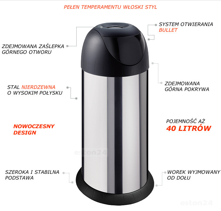 Informacje Kosz na śmieci do kuchni biura cicha klapa 40L - 7669866140 - oficjalne popularne